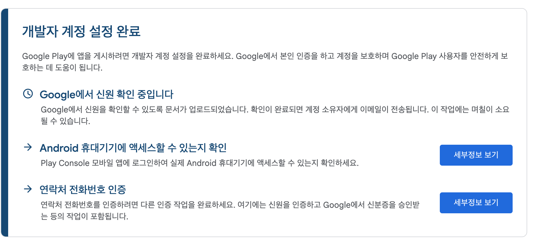 안드로이드폰에서 테스트를 해보기 위해 구글 플레이 개발자 계정을 생성했다.