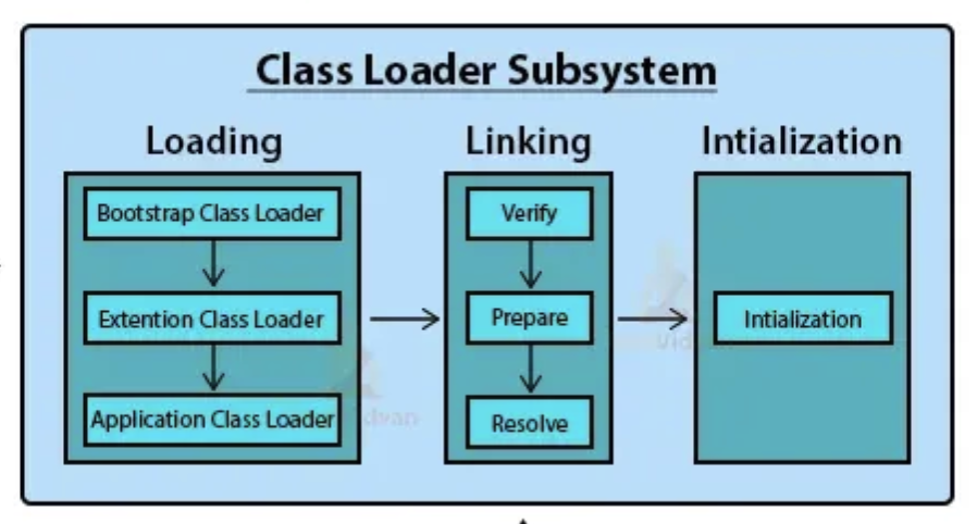 Class Loader는 Runtime시 동적으로 Class를 로드하고 jar파일 내 저장된 Class들을 JVM에 탑재한다. → Class를 처음 참조할 때, 해당 Class를 로드하고 링크하는 역할을 하는 것 !